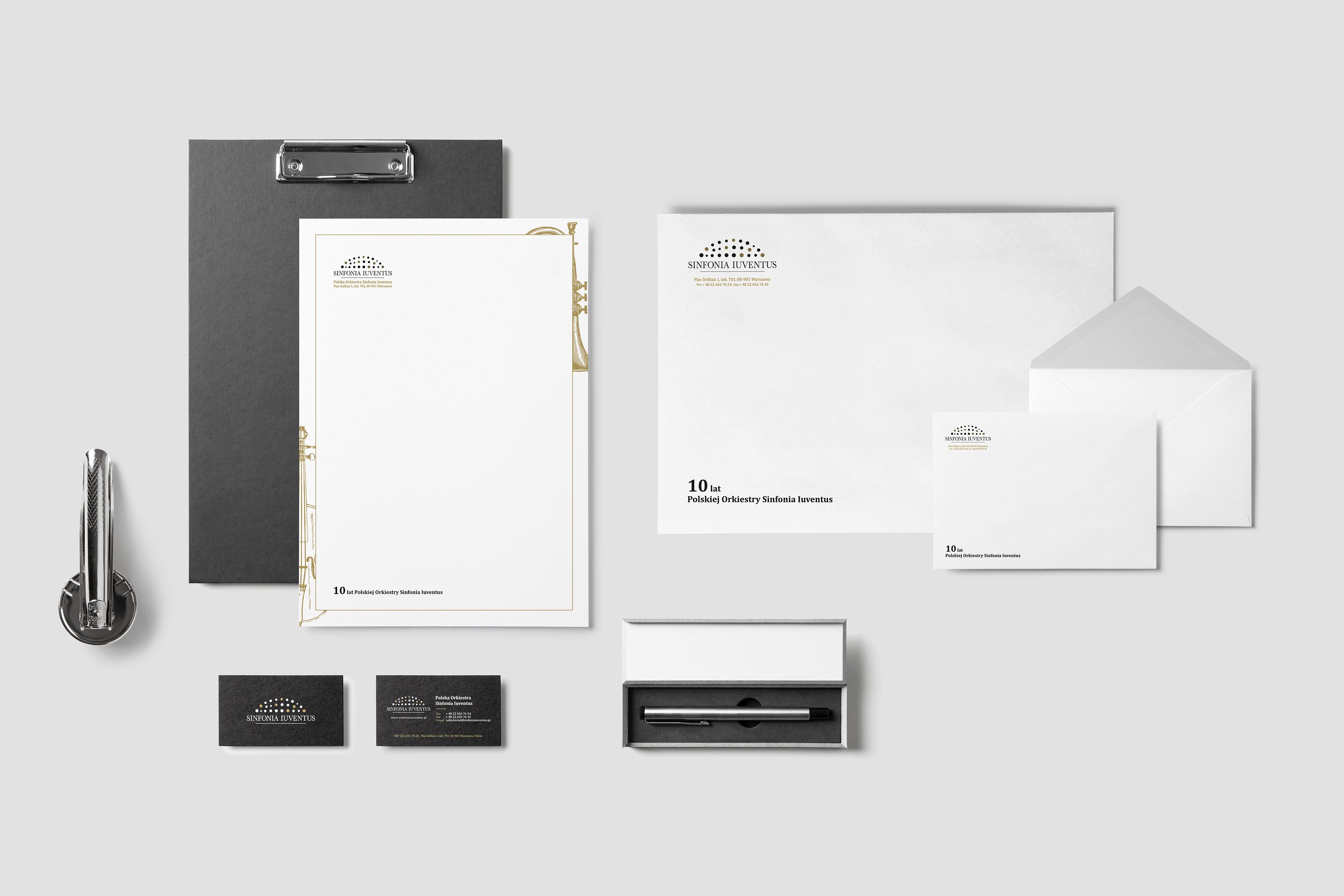 New identity branding for Sinfonia Iuventus. Brand paper, identity card and envelope.
